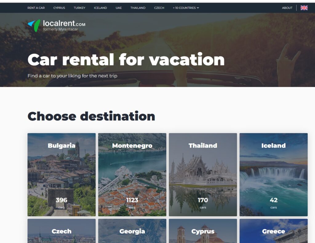 Localrent.com is a car rental platform that provides services in Montenegro. The platform offers a wide range of vehicles at competitive prices and supports English, Greek, and Russian languages. Localrent.com offers a commission of 50% revenue share.